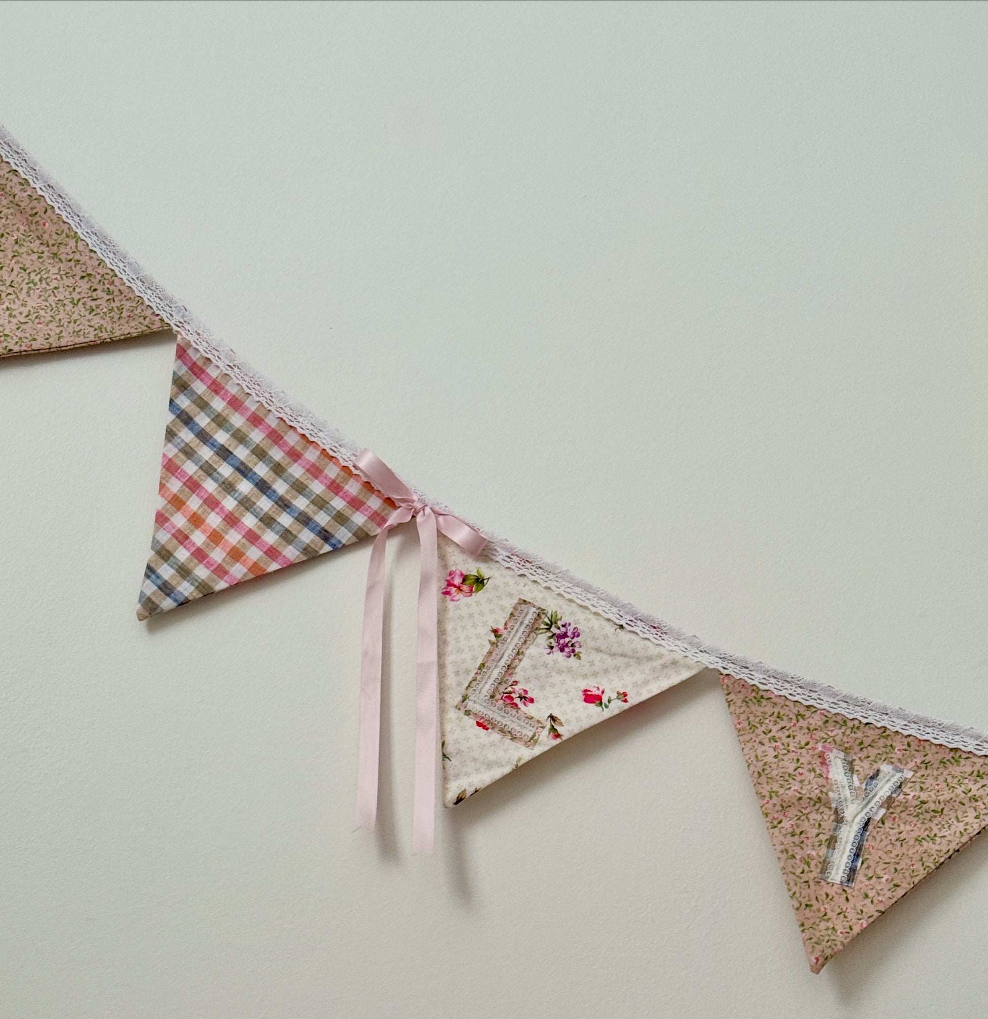 All buntings are unique and are approximately 3 metres long with ties on each end.